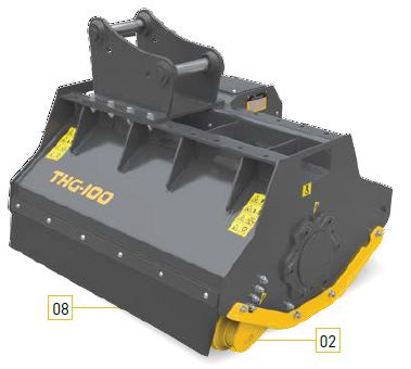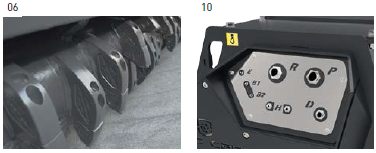 Replaceable hammers made of hard alloys with carbide wear points (F03 Hammers on center rotor, F04 hammer on side).