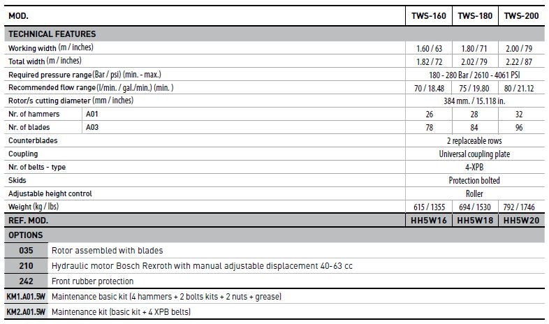 The Seven S-Series mulchers feature a large diameter rotor with a close ratio hammer configuration, resulting in long hammer life, increased grinding capacity and the production of fine “Classe I/Category I mulch” (see chart). A fine mulch gives good ground cover and returns to nature quickly.